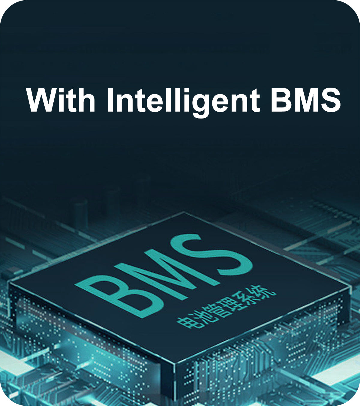 Built-in intelligent battery management system (BMS), which can monitor the battery status comprehensively and protect the battery from overcharge, overdischarge and overcurrent.