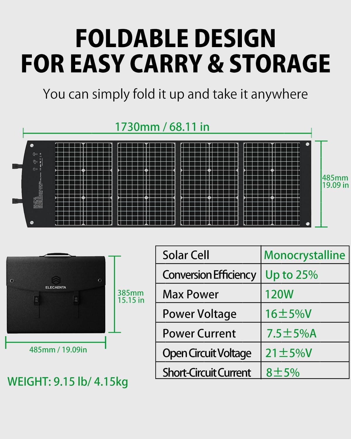 Made of 4 well-build monocrystalline siliconpanels,using high transmittance ETFE material and micro-concave-convex design,arimportant specification of this solar panelis aconversion efficiency of up to 24%, which isone of the highest available.