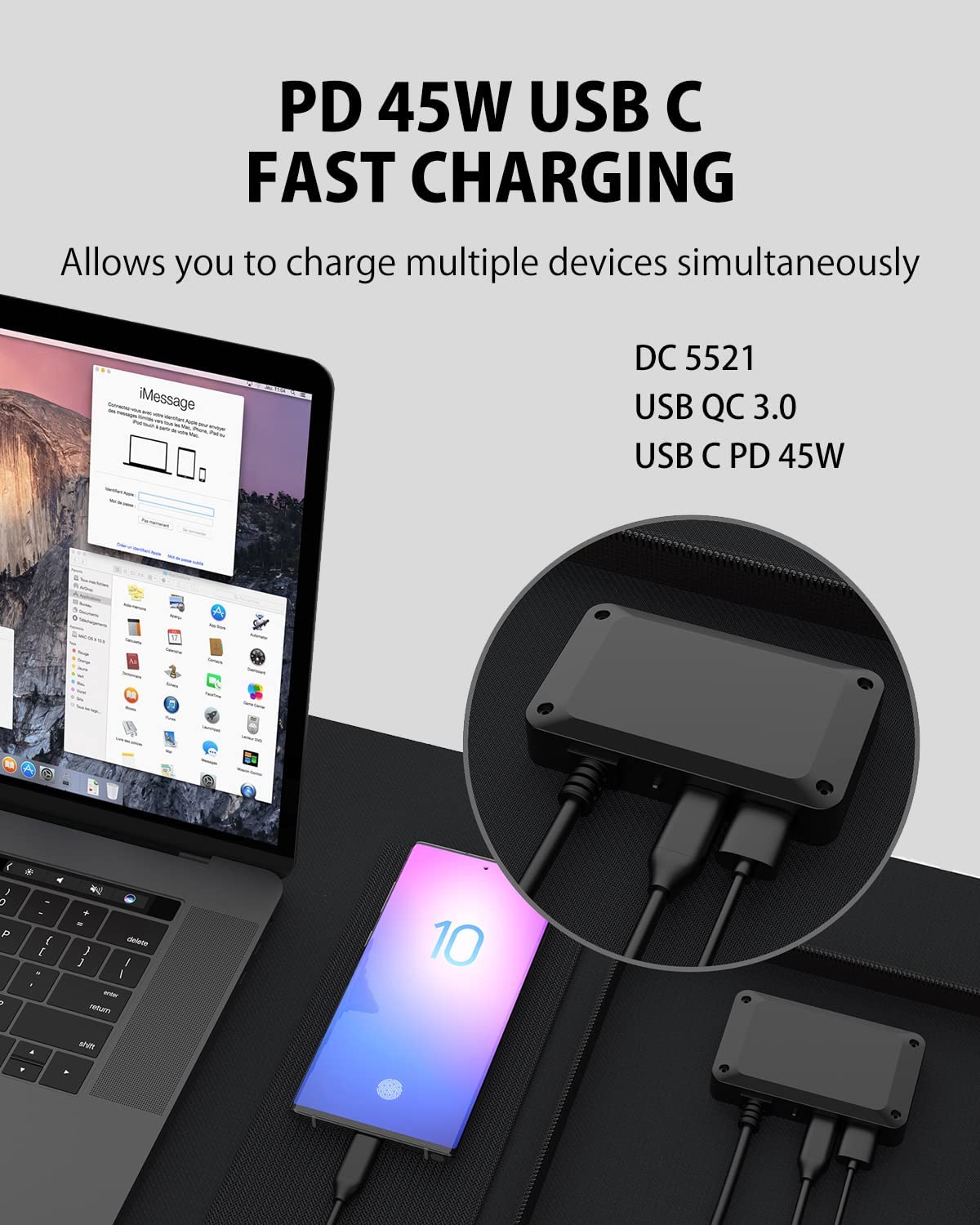 • HIGH COMPATIBILITY & VERSATILE: Built-in a DC cable plus extral 10 DC ports and the DC5521 to Anderson/ XT60/ 8020 cable support most of the portable power stations; Type-C PD45W / USB QC3.0 can quickly charge your smartphone, laptop, tablets, ipad, GPS, USB fan, camera or other USB devices at the same time